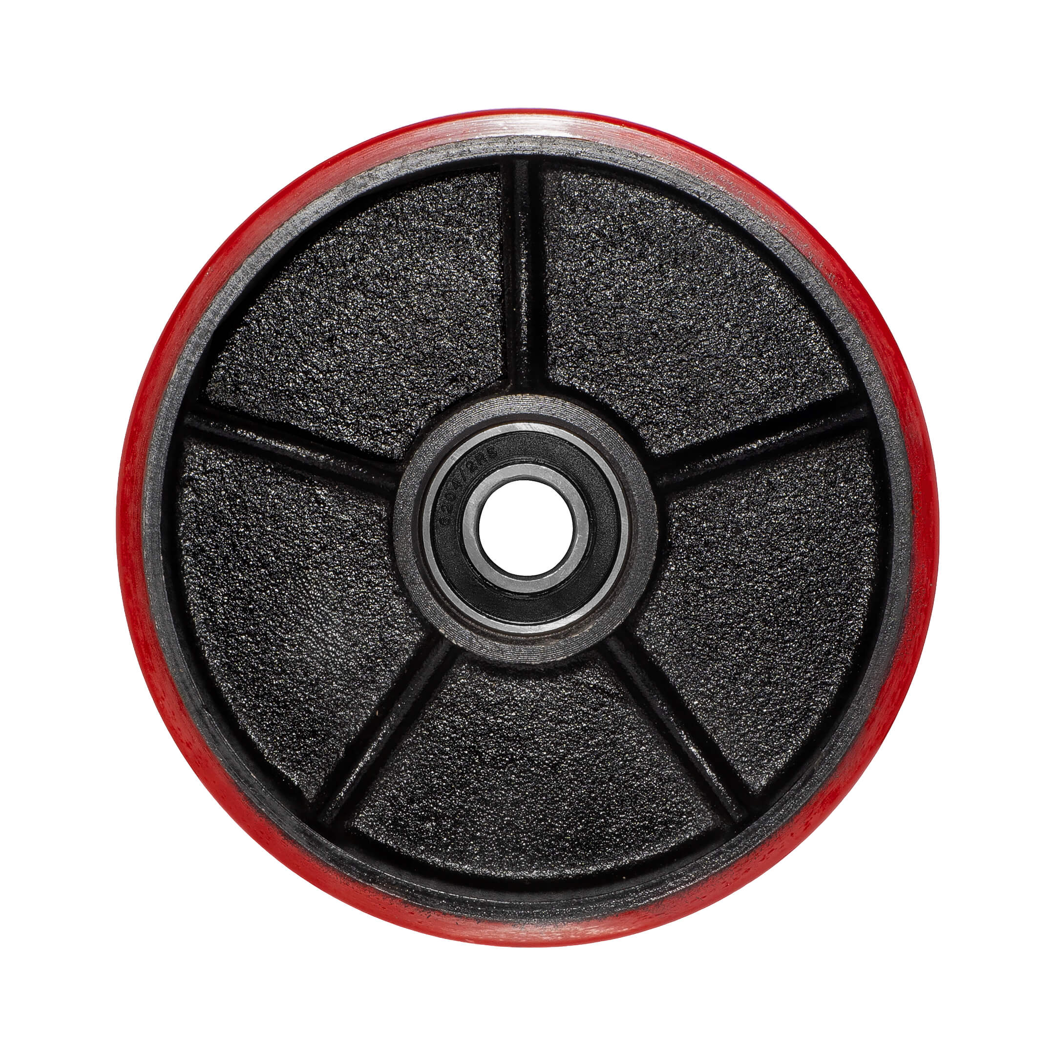 Roda de Direção em Ferro/PU para Paleteira Manual - Com Rolamento Instalado.